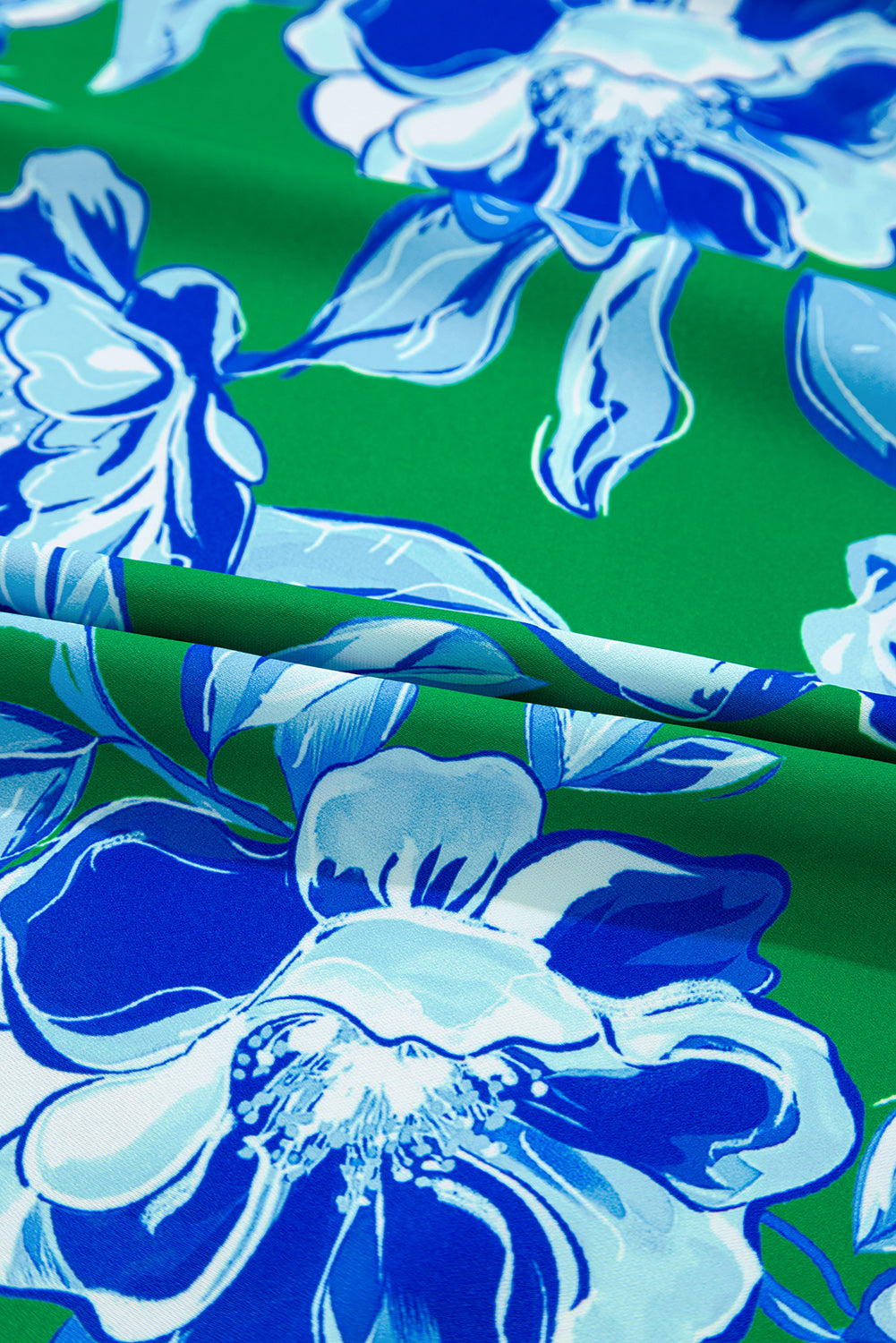 Green Floral Print Lace Trim Ruffle Sleeve Pleated Loose Blouse